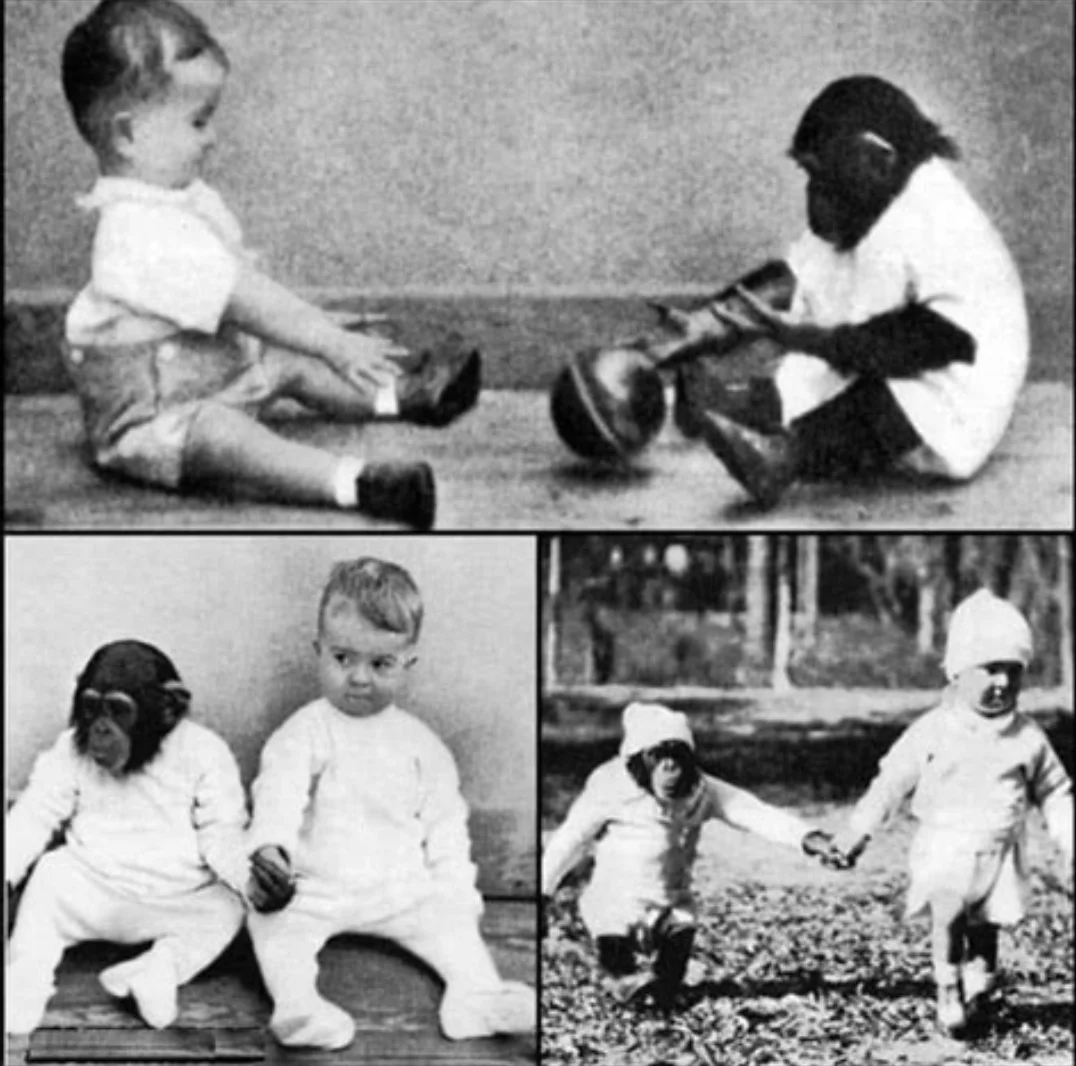 A "csimpánzfiú" kísérlet – 1931A floridai Duke Egyetem pszichológusa, Winthrop Kellogg azt vizsgálta, hogy mennyi a természet és mennyi a nevelés szerepe az emberré válásban. Vagyis: ha egy csimpánzt emberként nevelnek, képes lesz-e „emberként” viselkedni? Az ötlet meredek volt, de akkoriban az etikai határokat még jóval lazábban kezelték. A házaspár örökbe fogadott egy 7 hónapos nőstény csimpánzt, akit Gua-nak neveztek el, és saját, 10 hónapos kisfiukkal, Donalddal együtt nevelték, teljesen azonos körülmények között. Ugyanazt ették, ugyanazokat a játékokat kapták, együtt aludtak, fürödtek, figyelték a reakcióikat – mintha testvérek lettek volna. Mi történt? Gua valóban gyorsan tanult:felismerte utasításokat, jeleket, megtanulta kinyitni ajtókat, sőt, néha ügyesebb volt a kisfiúnál is. Viszont Donald viselkedésére elkezdett visszahatni a csimpánz jelenléte. Nemcsak utánozta Gua hangjait, hanem lassabban kezdett beszélni, sőt csimpánzokra jellemző viselkedésformákat vett át. {attachment id=1323340} A vége – és amiért hátborzongató. A kísérletet 9 hónap után megszakították, mert a szülők észrevették, hogy Donald fejlődése visszaesik. Félő volt, hogy a gyerek nyelvi és szociális fejlődése tartósan károsodik. Gua-t visszaküldték az állatkertbe, ahol sajnos alig egy év múlva elpusztult. Donald felnőttként pszichológus lett, de később, tragikus módon, öngyilkos lett 43 évesen. Miért beszélnek erről ma is?Ez az eset a "természet vs. nevelés" vitájának egyik leghírhedtebb epizódja. Ma már egy ilyen kísérletet semmilyen etikai bizottság nem engedélyezne, de akkoriban ez egy úttörő kutatásnak számított – tragikus mellékhatásokkal.