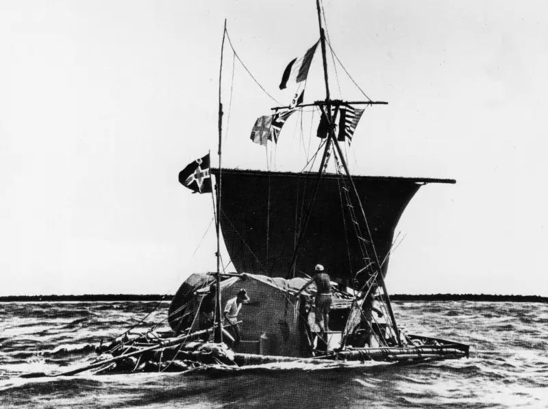 1947 Thor Heyerdahl norvég etnológus és 'Kon-Tiki' tutaja 110 nap alatt kelt át a Csendes-óceánon