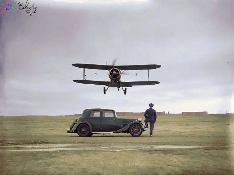 1945 A brit Gloster Gladiator felszáll és átrepül egy Triumph Gloria felett, II. világháború