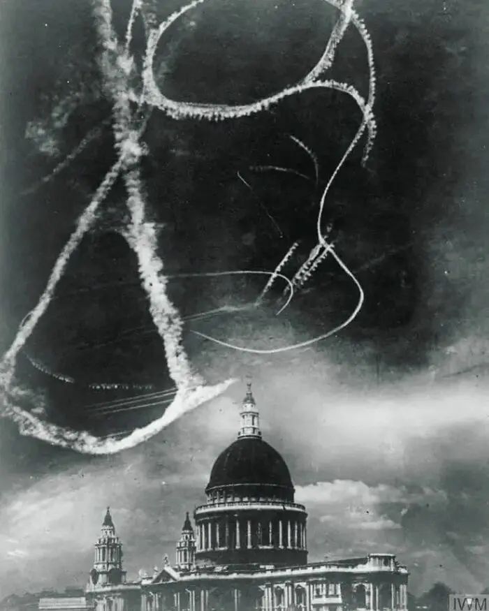 1940 Német és brit repülőgépek harcolnak a Szent Pál-székesegyház felett a brit csata során, London